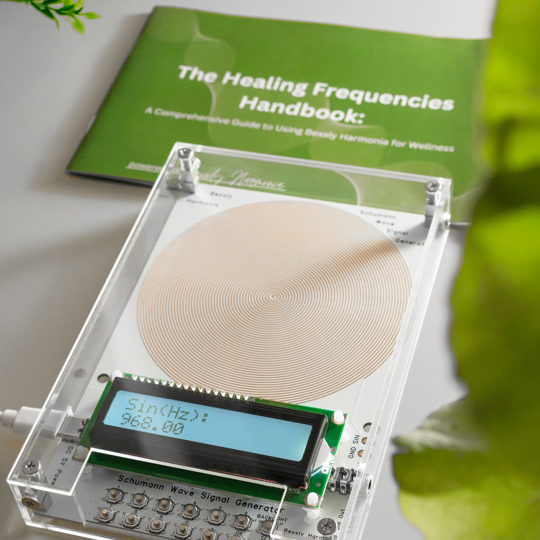 The physical Frequency Handbook is included free with every Harmonia. 100+ frequencies, protocols, and timing guides — so you actually know what you're doing. This is what no one else offers.
